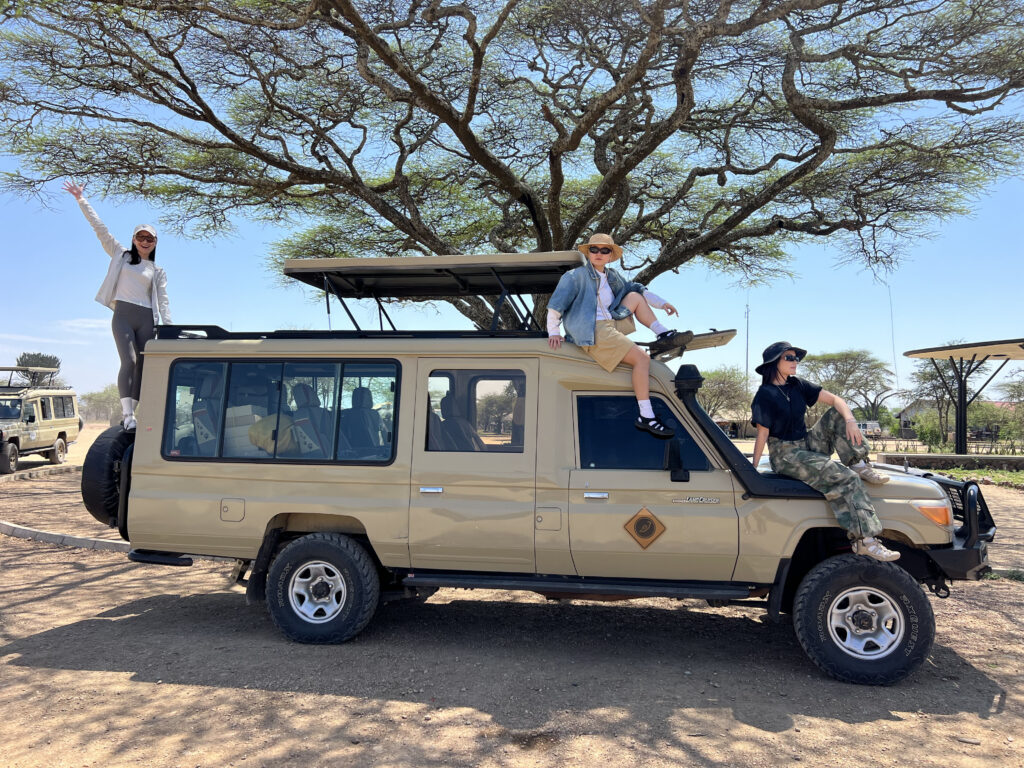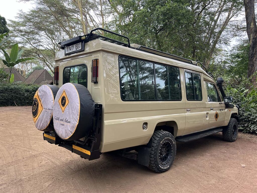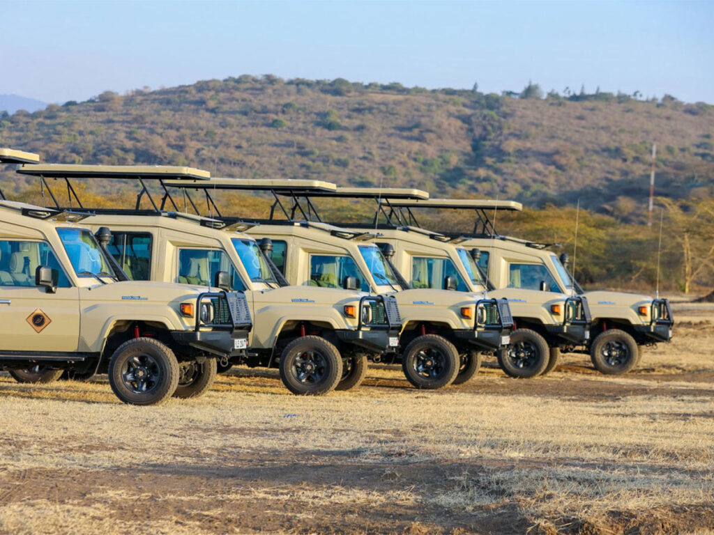 Our safari vehicles, Toyota Land Cruisers 4X4, are made to handle tough African terrain and bumpy roads while giving maximum comfort to our guests. Each vehicle can carry up to 7 people, and there is an extra seat next to the guide. Everyone gets a window seat for better wildlife viewing.