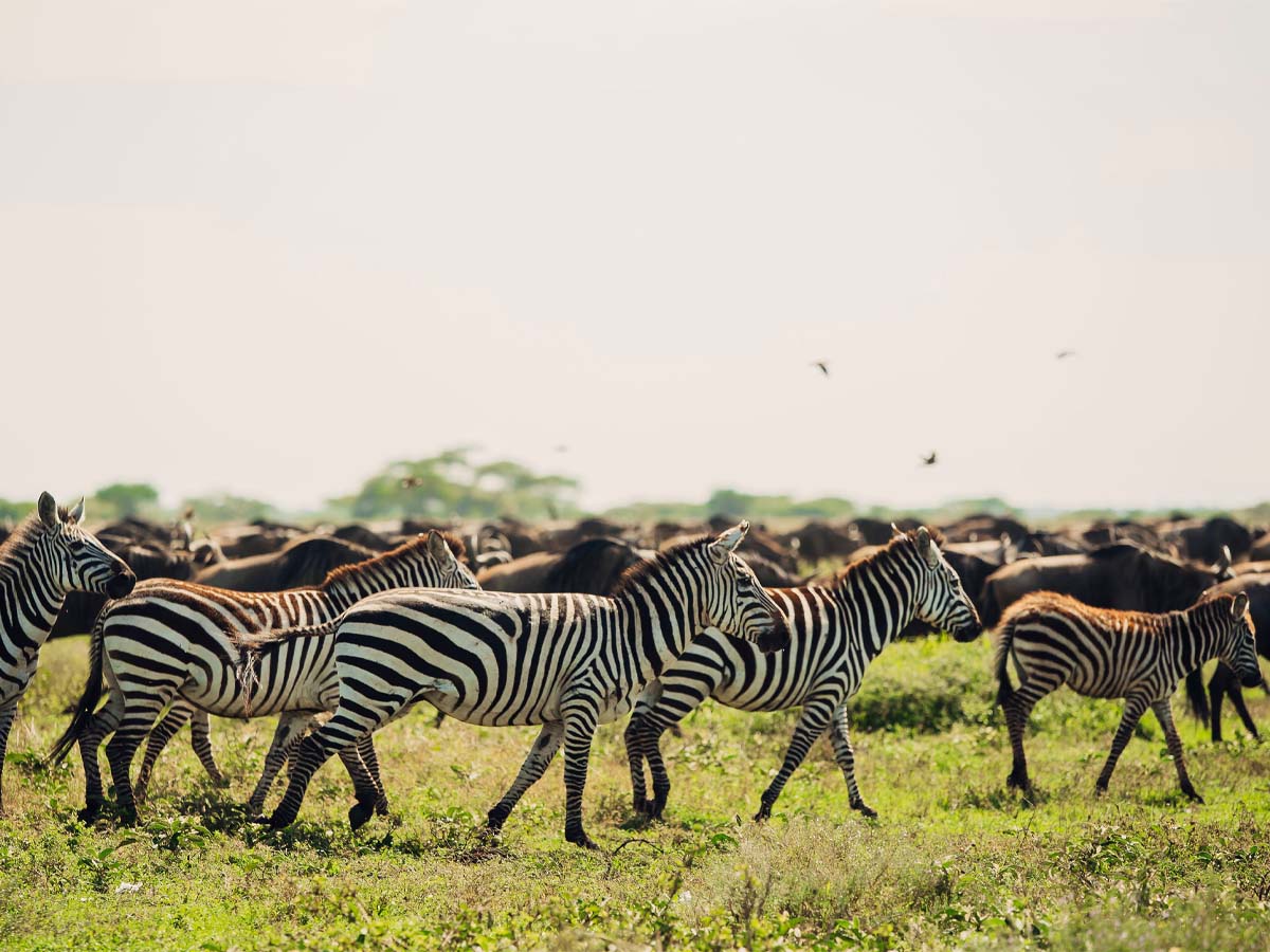During this month, the giant herds of the Great Migration rest in the southern plains of the national park. At this time, wildebeests and zebras give birth to their young, with up to 8000 babies born each day.